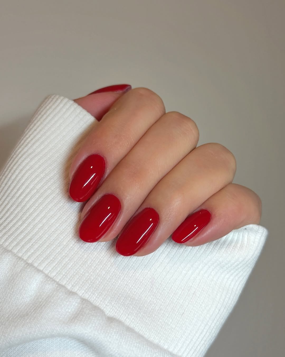 This timeless cherry red manicure proves that less truly is more. The glossy finish catches light perfectly, emphasizing the clean shape and even polish application. It’s the definition of bold, feminine confidence.