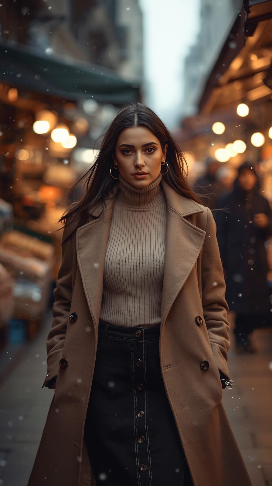 💡 Pro Tip: Contrast light sweaters with darker skirts to create timeless winter balance.