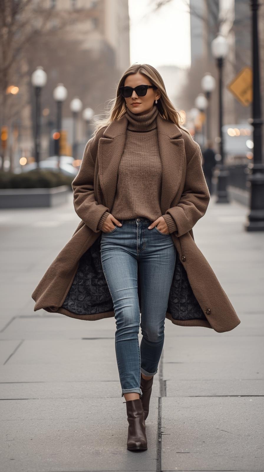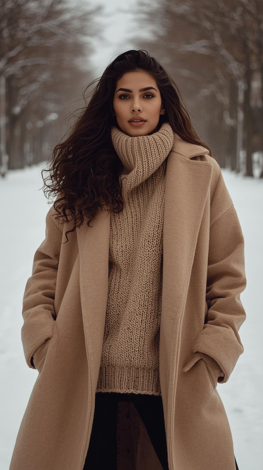 💡 Pro Tip: Add a camel or taupe coat for a structured layer over oversized winter sweaters.