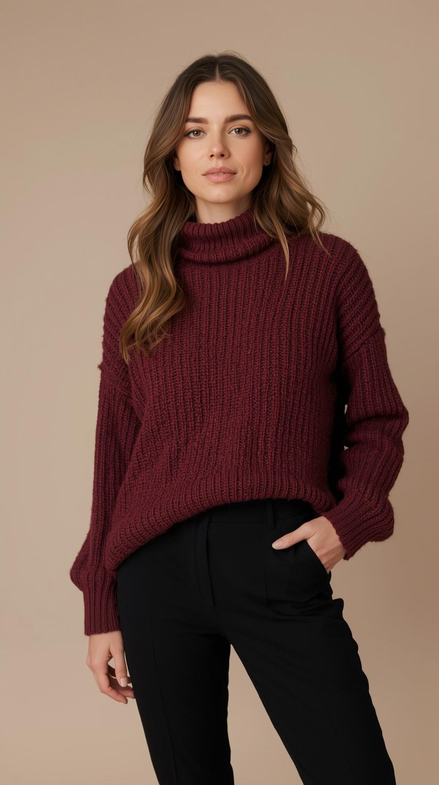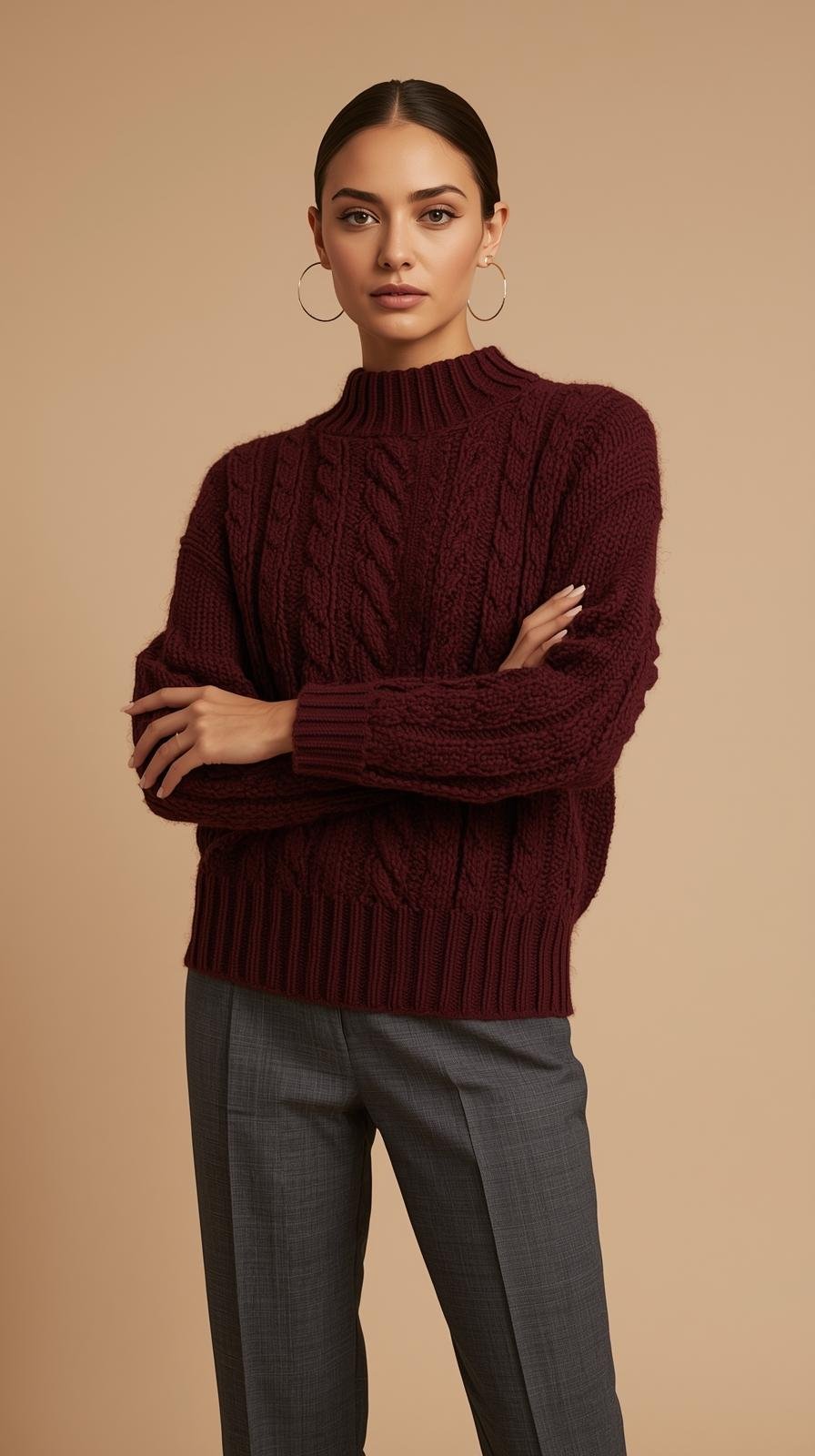 💡 Pro Tip: Burgundy sweaters pair beautifully with gold-toned accessories for added warmth.